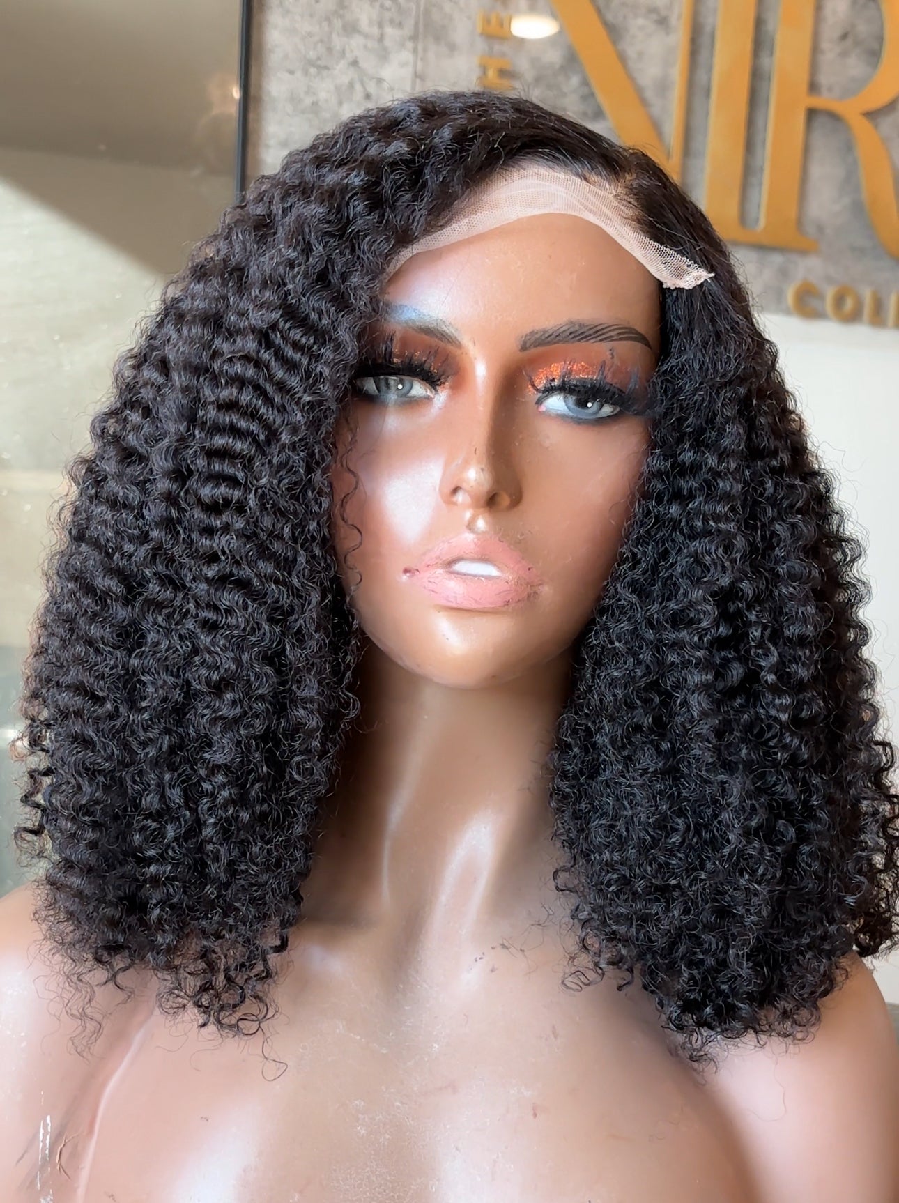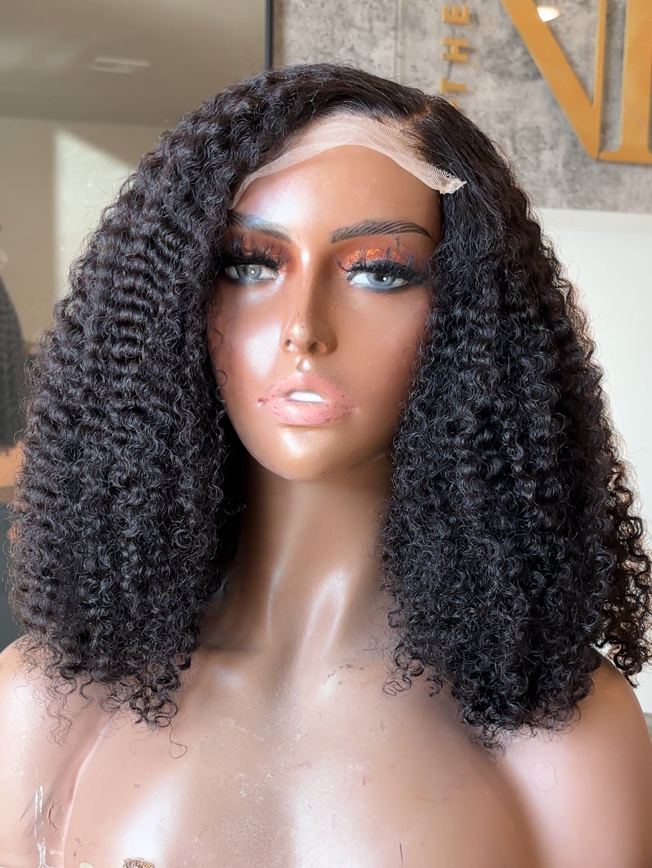 customized and bleached premade 5X5 CLOSURE unit. Sewing machine wefted Using Raw Kinky Curly Hair . Unit can be worn in side or middle part! Adjustable strap added.