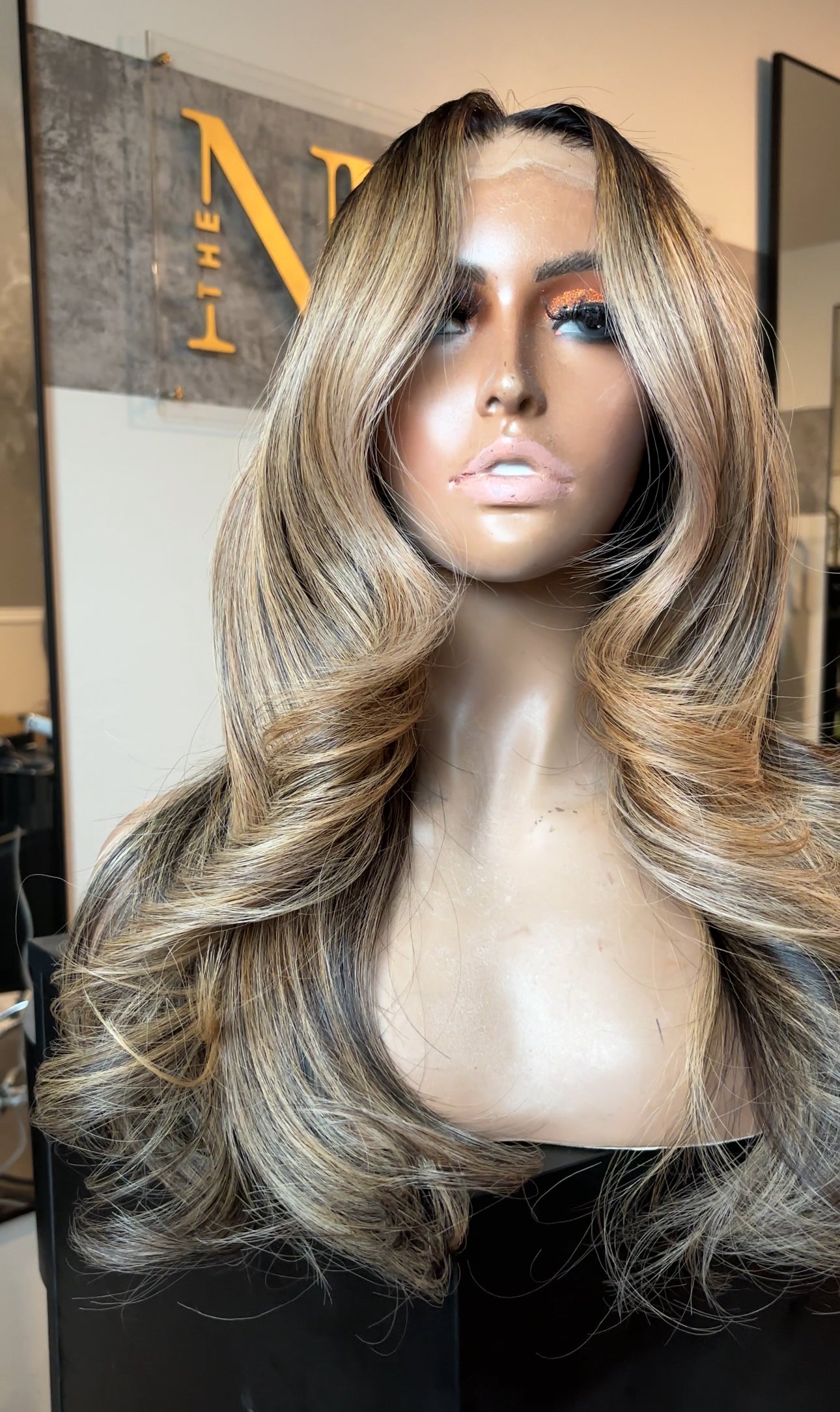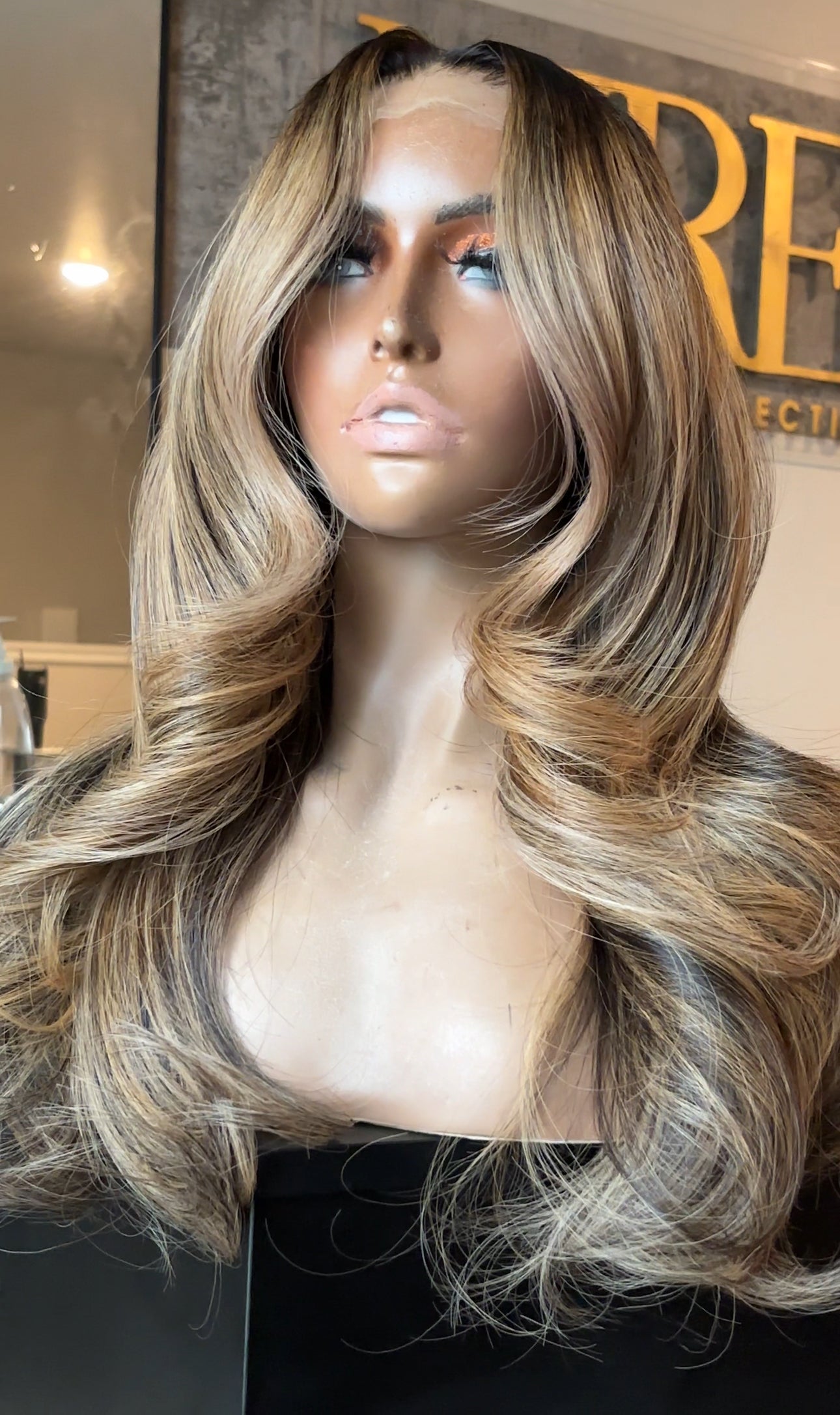 Custom made 5x5 transparent closure using 3 bundles of high quality virgin hair. Sewing machine wefted. Custom color unit. Elastic band added for security. (Wig4)